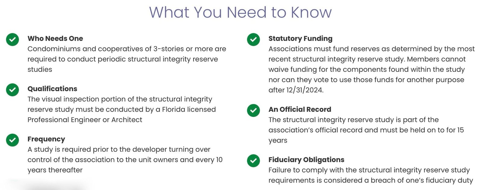 Signed into law in May, 2022, Florida Senate Bill 4-D establishes statewide Structural Integrity Reserve study and funding requirements for condominium associations.